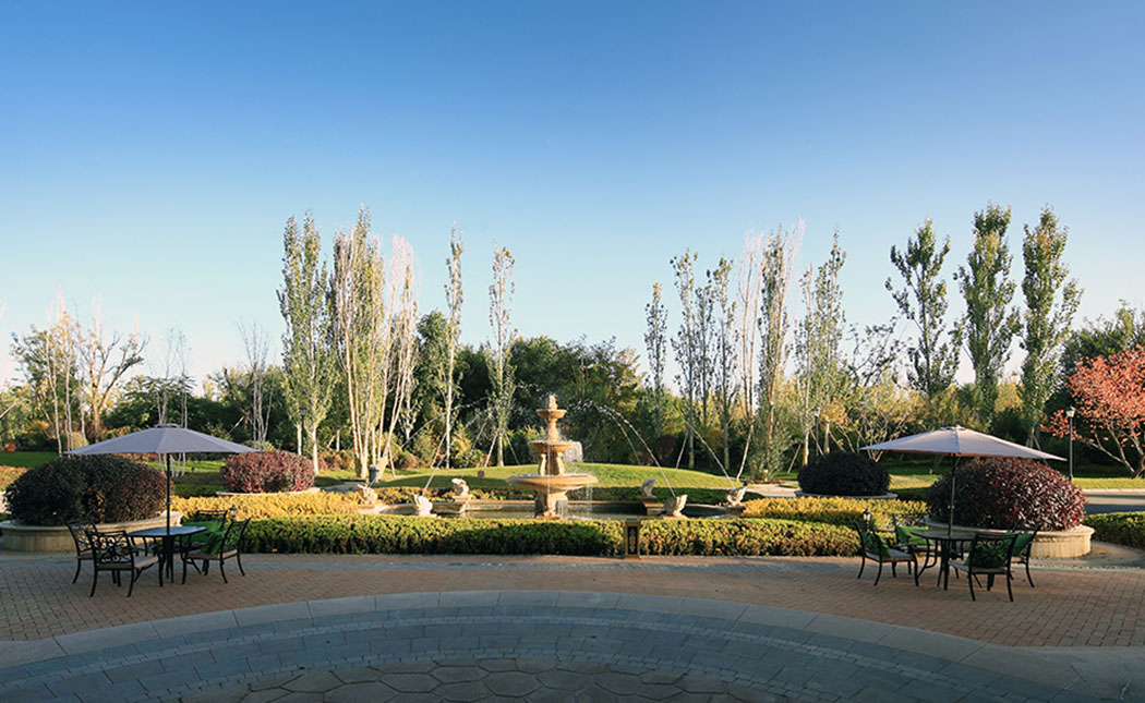 景观设计通过由主入口仪式轴线、景观生态水体轴线及串联各个空间的枝干绿轴组成的骨架轴线系统,将不同的动静功能分区合理散落于枝干绿轴之中,达到错落有致、疏密有序的视觉感官和实用功能的有机结合,实现步移景异的浪漫温泉生活之旅。